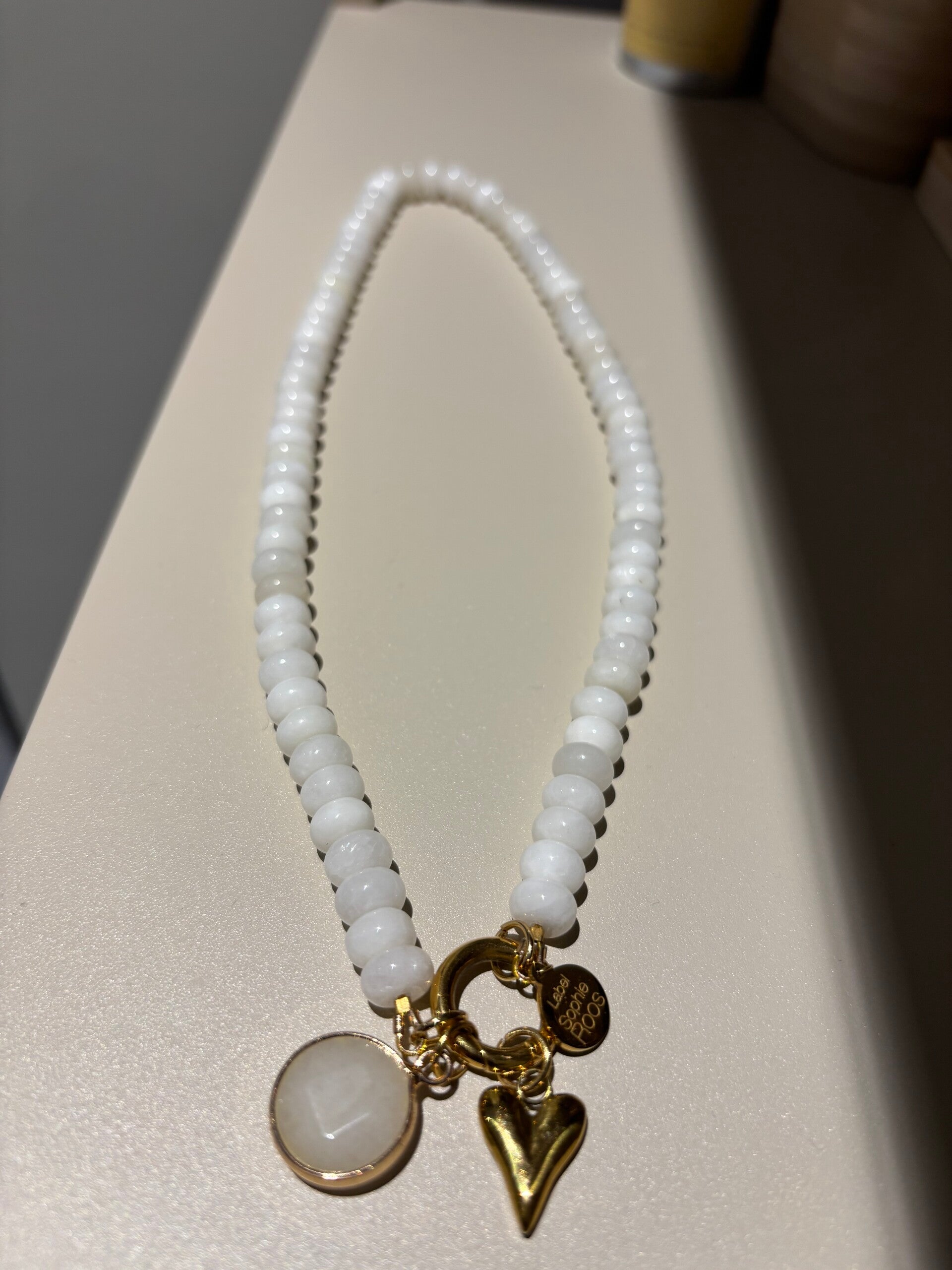 Ketting wit met bedel hartje en rond steentje